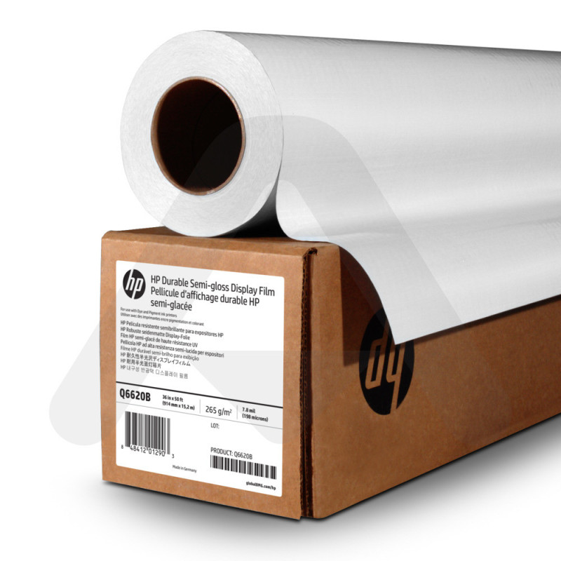 Découvrez la qualité durable avec le Film Semi-Glacé HP (Q6620B), 265g. 914 mm x 15,20 m conçus pour résister aux UV et captiver les regards, saison après saison.